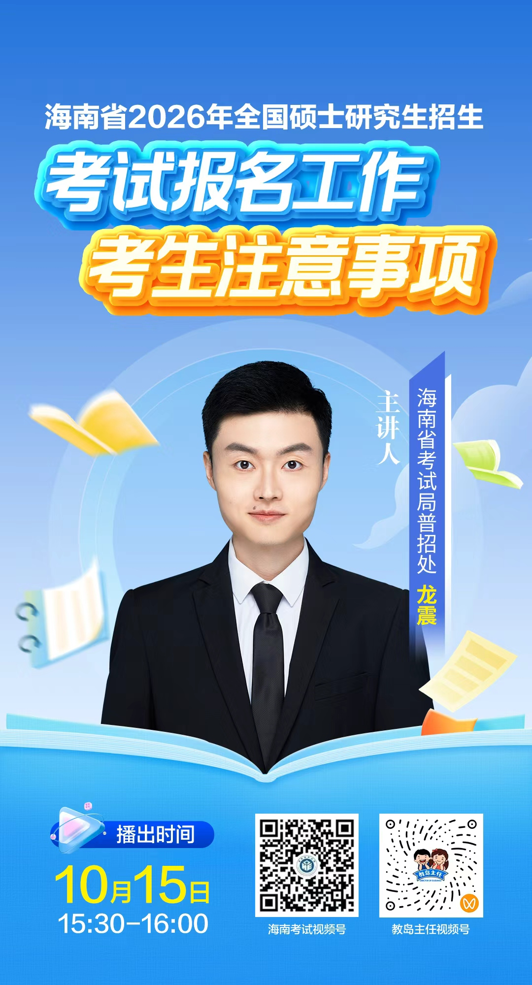 海南考试直播间10月15日开播海南省2026年全国硕士研究生招生考试报名工作注意事项