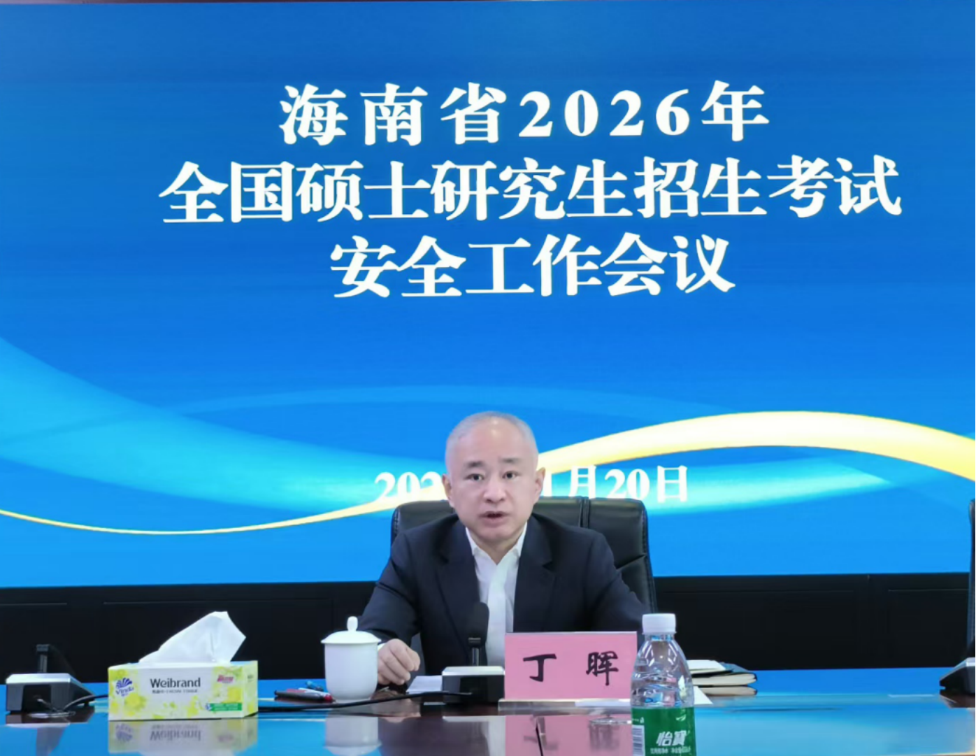 2025年11月20日,海南省召开2026年全国硕士研究生招生考试安全工作会,全面动员和部署我省2026年全国硕士研究生招生考试安全工作。省委教育工委副书记,省教育厅党组书记、厅长丁晖出席会议并讲话。省教育厅党组成员,省考试局党组书记、局长王孝云主持会议。