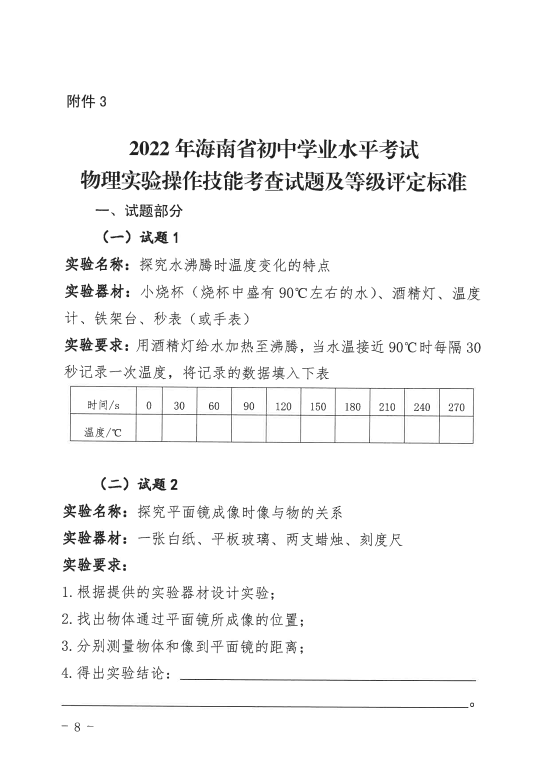 1.2022年海南省初中学业水平考试物理和化学实验操作技能考查实施细则