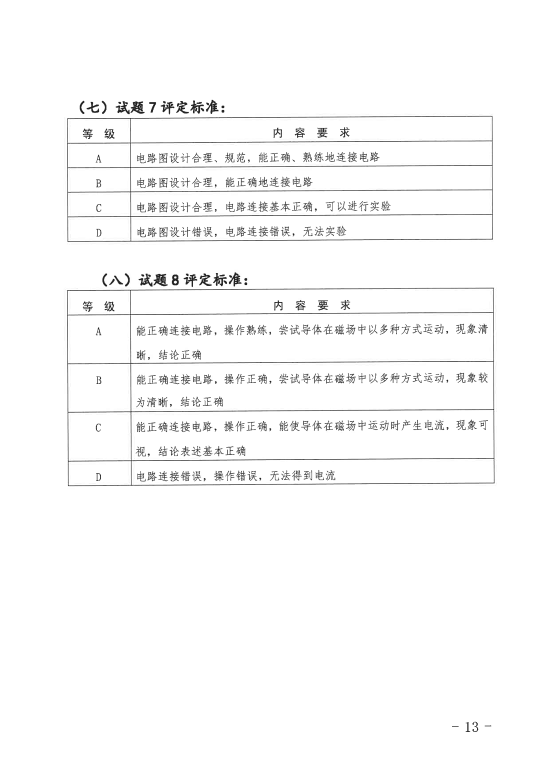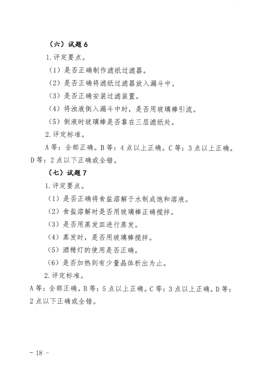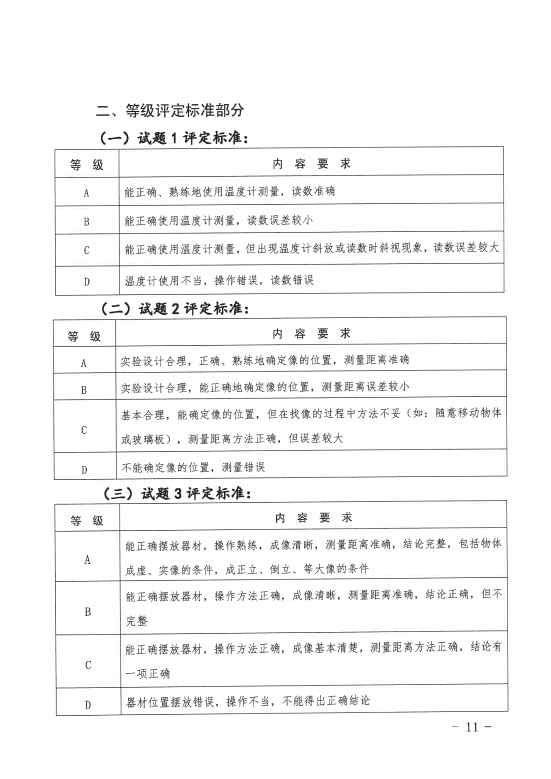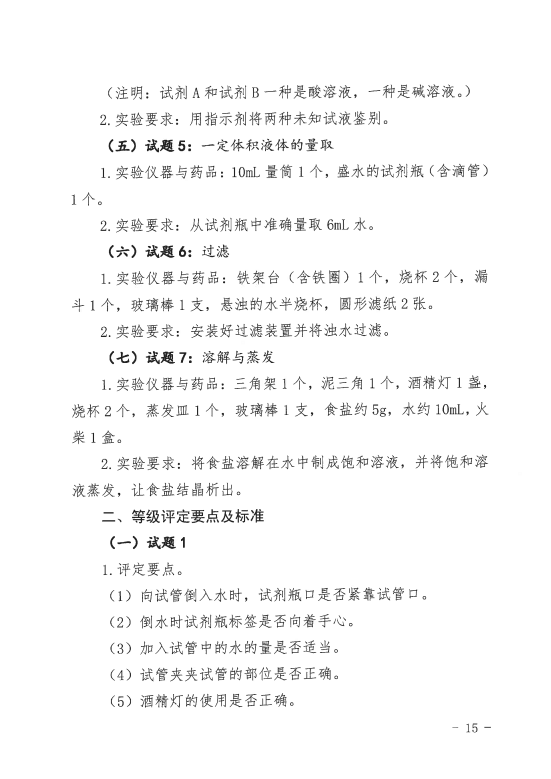 三、省中招办提供物理和化学实验操作技能考查试题及相应考查等级评定标准。