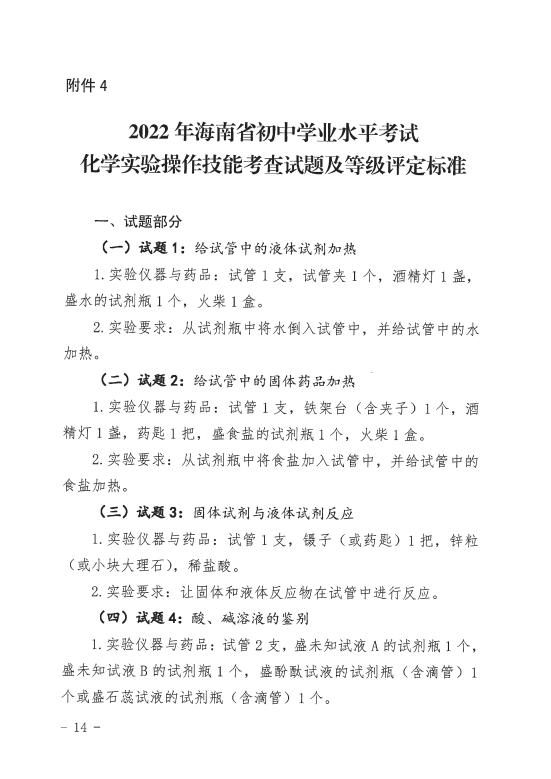 海南省考试局关于印发2022年海南省初中学业水平考试物理和化学实验操作技能考查实施方案的通知