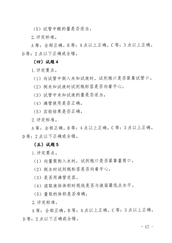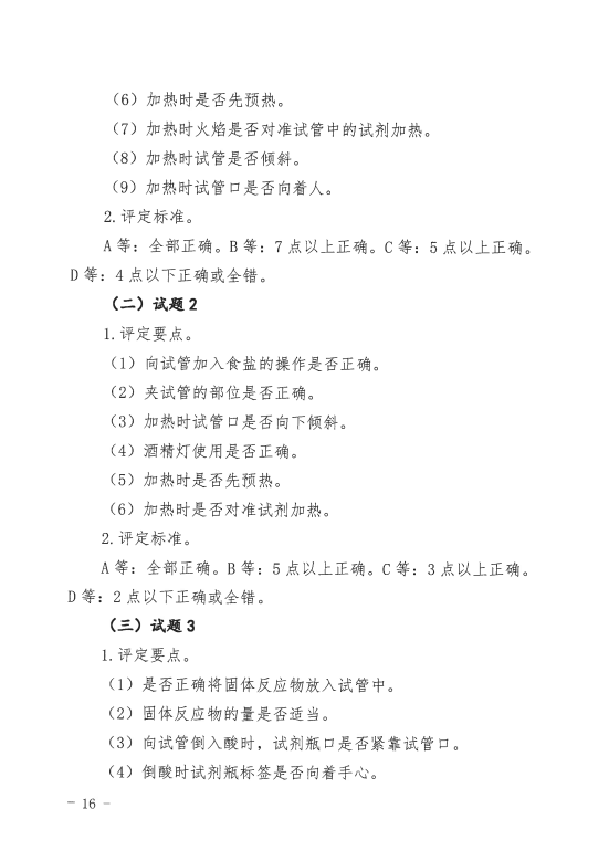 4.2022年海南省初中学业水平考试化学实验操作技能考查试题及等级评定标准
